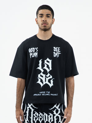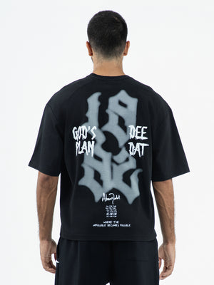 DEEDAT GOD'S PLAN CROPPED Oversized Tees - Black