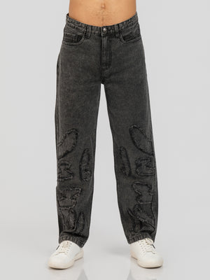 DEEDAT GOD'S PLAN Oversize Standard Hem Jeans - Black