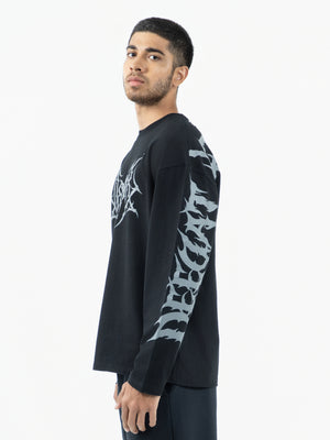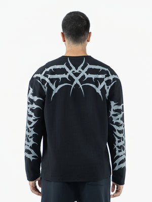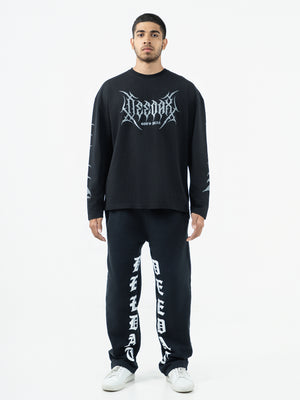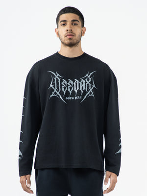 This DEEDAT GOD'S PLAN Oversized Tee in black combines comfort and style with its premium cotton fabric and oversized fit. Featuring a classic crew neck and long sleeves, it offers a relaxed yet fashionable silhouette. The standard hem and plain texture provide a clean look, while the printed embellishment adds a distinctive touch, making it a versatile piece for casual and streetwear wardrobes.
