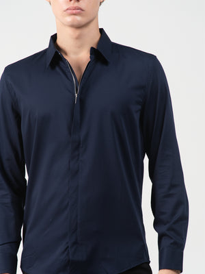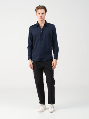 DEEDAT Long Sleeve Slim Fit Party Shirt - Navy