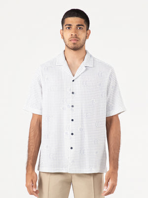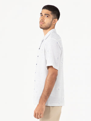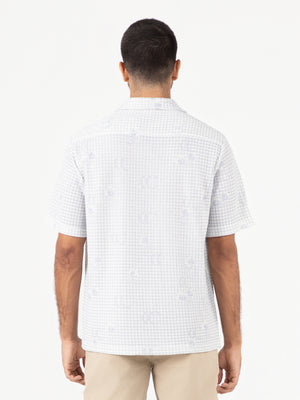 Crafted from premium cotton, this blue short-sleeve shirt features an embossed texture that adds subtle depth to its design. The regular fit and standard hem provide comfort and versatility, while the distinctive Cuban collar offers a stylish, modern edge. Part of the Nature Verse collection, this fashion-forward piece combines natural fabric with contemporary detailing for an elevated everyday look.