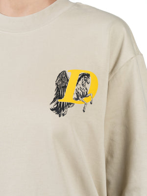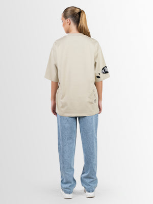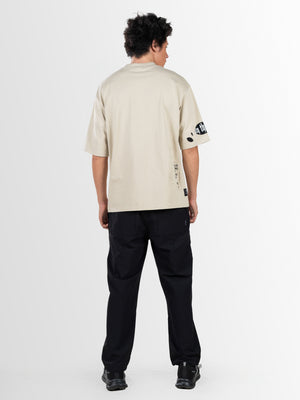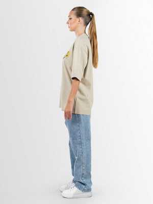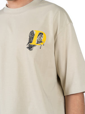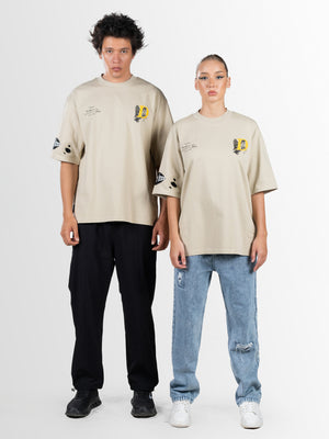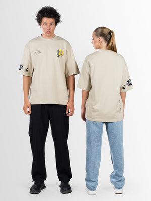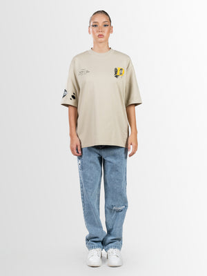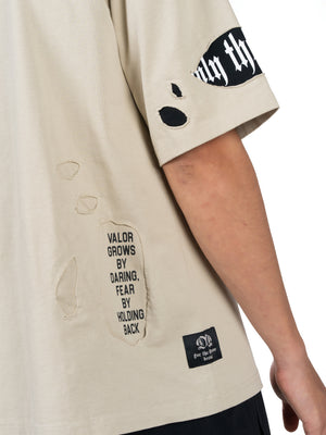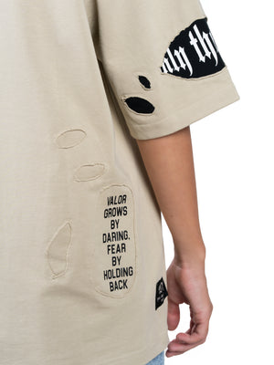 DEEDAT Only The Brave Short Sleeve Oversized Crew Neck Tee - Beige
