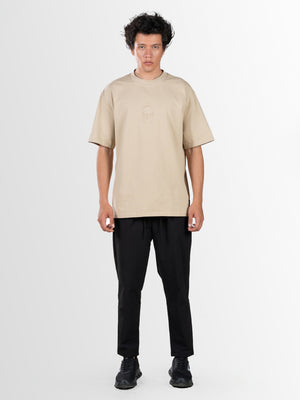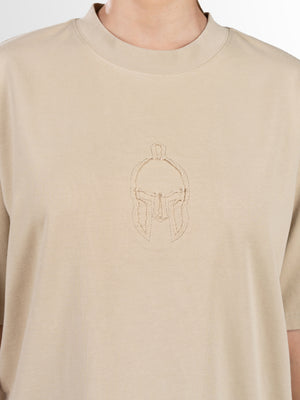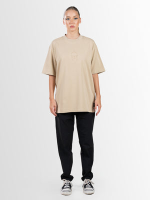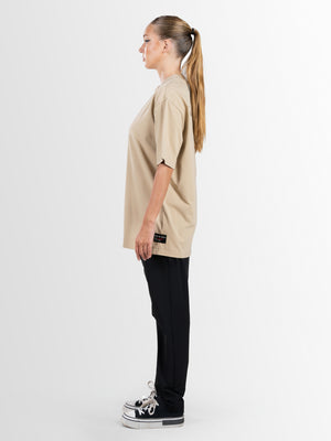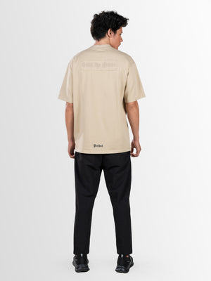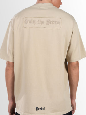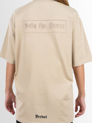 DEEDAT Only The Brave Short Sleeve Oversized Crew Neck Tee - Beige