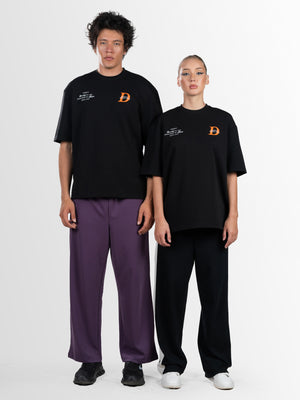 This trendy oversized t-shirt comes in a bold black color, crafted from premium interlock fabric for a smooth and comfortable feel. Designed with a classic crew neck and short sleeves, it offers a relaxed yet stylish fit. The plain texture is enhanced with flock print embellishment, adding a unique and fashionable touch. Perfect for a modern, effortless look.