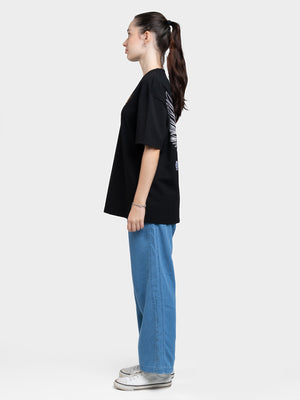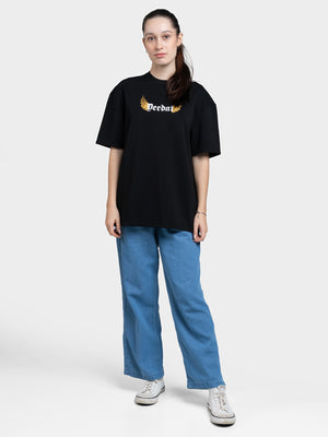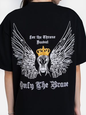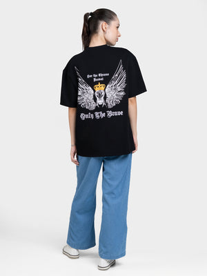 DEEDAT Only The Brave Short Sleeve Oversized Crew Neck Tee - Black