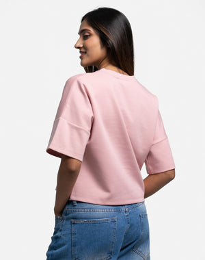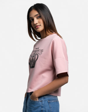 DEEDAT Only The Brave Short Sleeve Oversized Crew Neck Tee - Pink