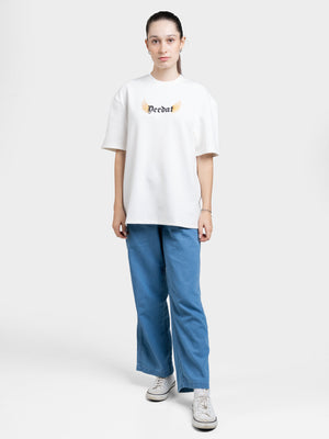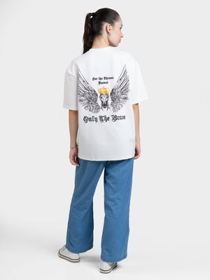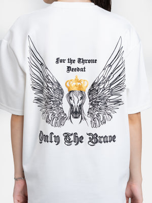 DEEDAT Only The Brave Short Sleeve Oversized Crew Neck Tee - White