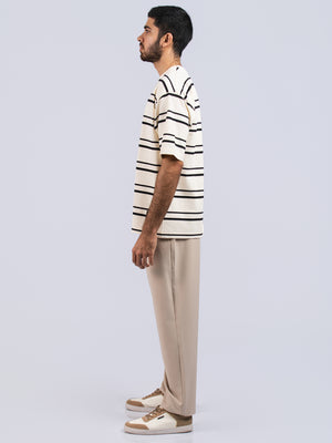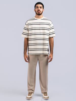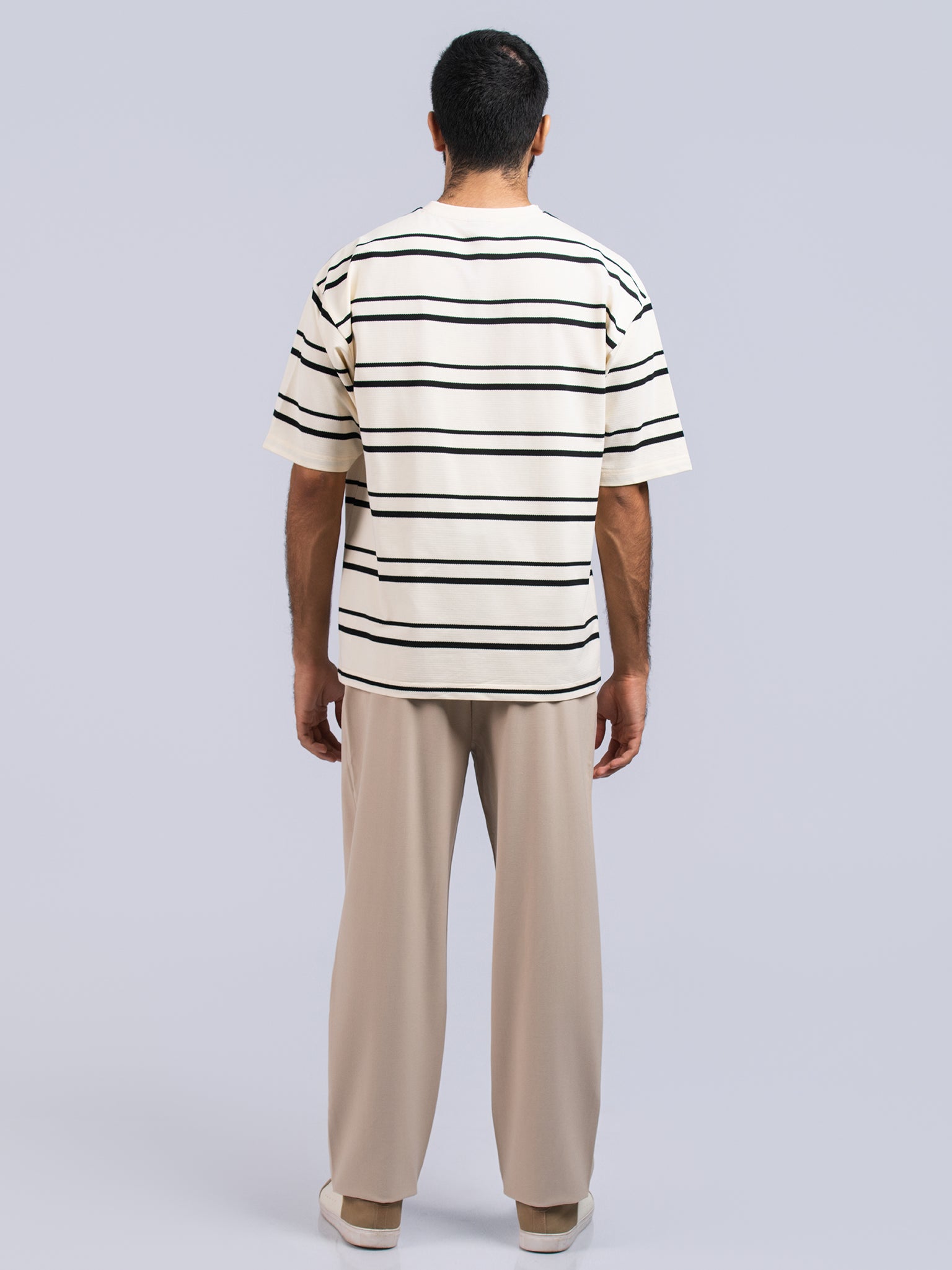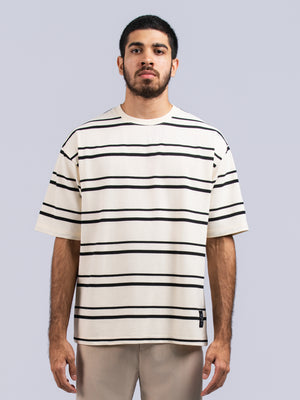 Crafted from premium cotton, this oversized crew neck tee delivers effortless style with its striped texture in off-white and black. The relaxed fit and straight hem create a contemporary silhouette that works seamlessly across casual and smart-casual settings. Short sleeves provide breathability for year-round wear, while the quality construction ensures durability through repeated washing. A versatile wardrobe essential that pairs with virtually anything.