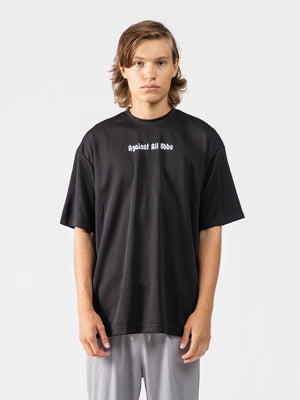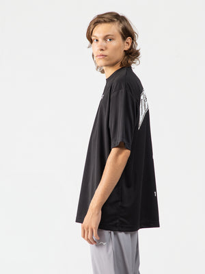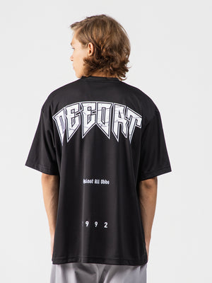 This DEEDAT Performance Wear Oversized Tee in black features a crew neck and short sleeves, designed with an oversized fit and standard hem for a modern silhouette. Made from a smooth polyester–spandex blend, it offers excellent stretch and comfort, making it ideal for active or casual wear. Its plain texture ensures versatile styling while maintaining durability and ease of movement throughout your day.