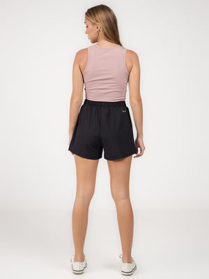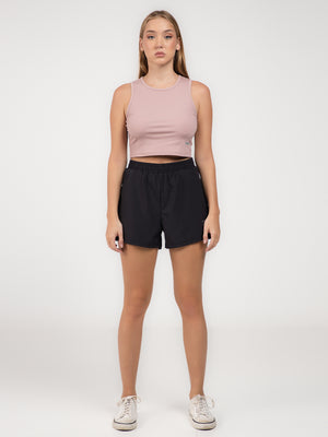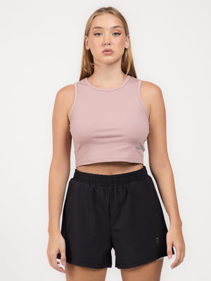 This fashionable sleeveless top comes in a plain pink design, featuring a crew neck and crafted from nylon-spandex material.