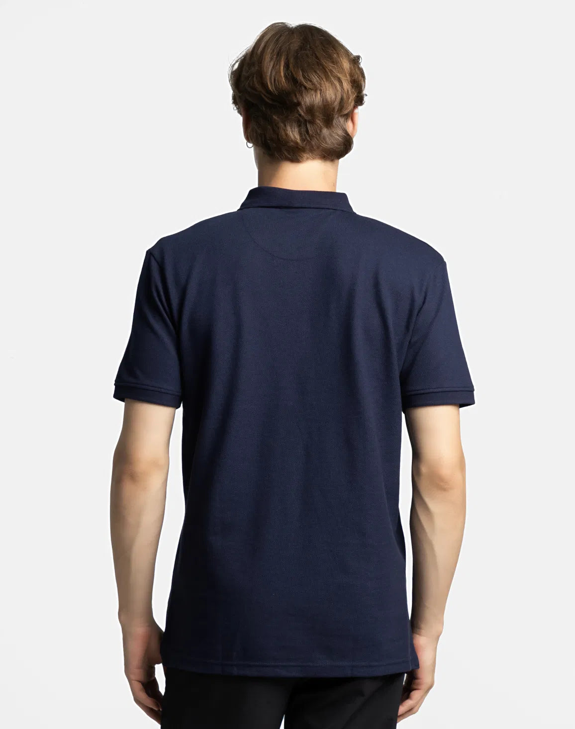 The shirt features a polo neck with a cutaway collar, a standard hem, and a regular fit with short sleeves. It has a plain texture, is made from pique material, and is designed as a basic style.
