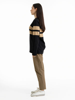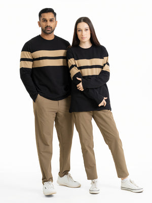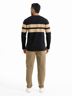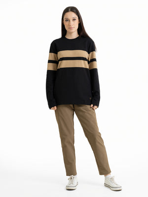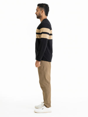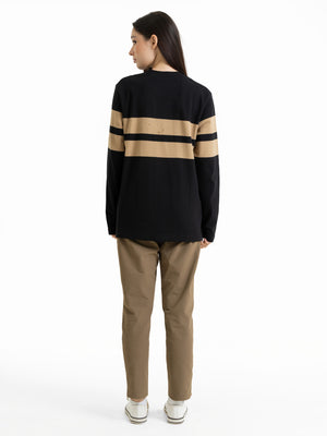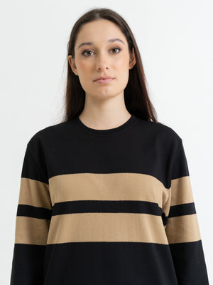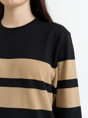 The DEEDAT Fashion Top is designed with a slim fit and crafted from unique popcorn-textured material with a stylish stripe pattern. It features a classic crew neck, long sleeves, and a standard hem, blending comfort and modern elegance for a versatile look.