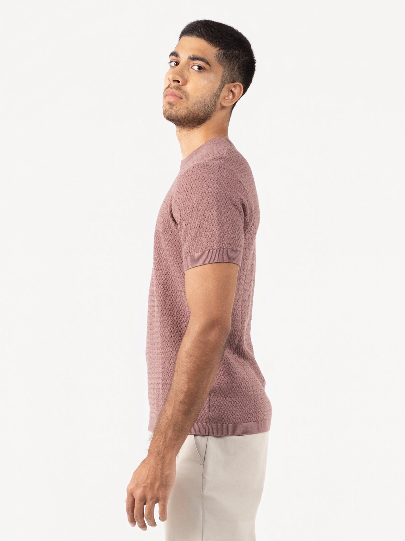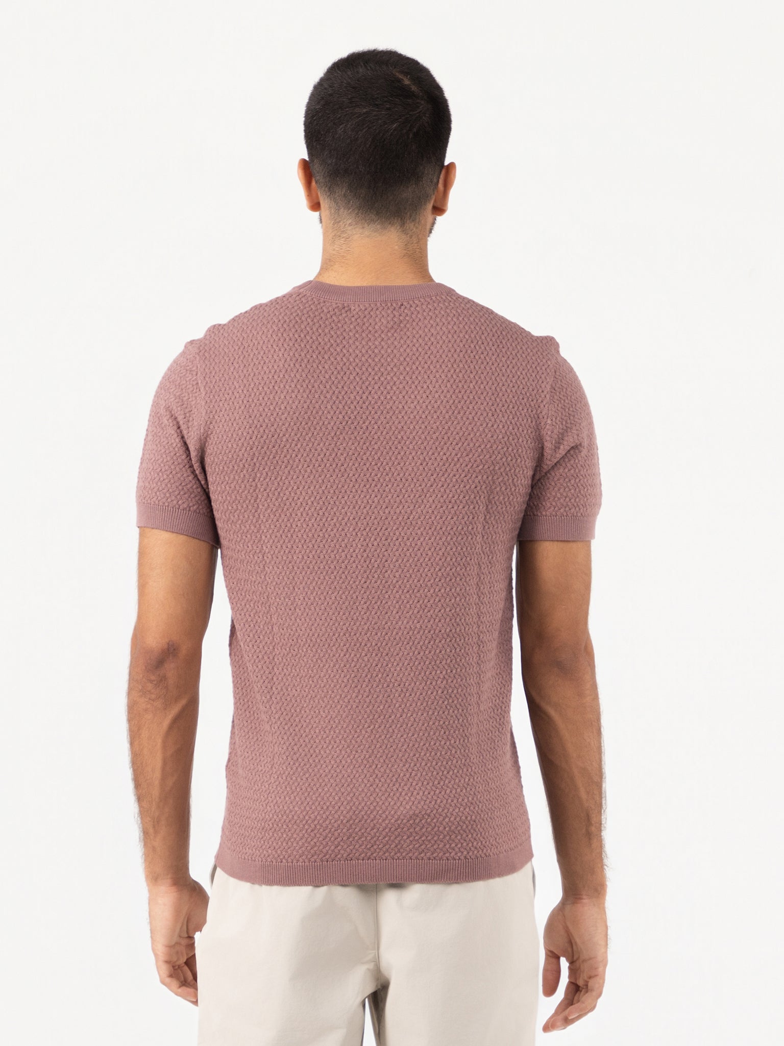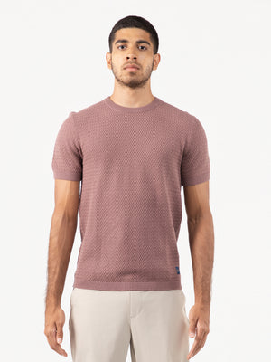 This brown, slim-fit crew neck T-shirt from the Portofino collection combines style and comfort with its flat knit fabric and subtle striped texture. Designed under the Leonardo concept, its short sleeves and tailored cut offer a sleek, modern look ideal for fashion-conscious individuals seeking refined simplicity. Perfect for layering or wearing alone, this piece delivers effortless sophistication.