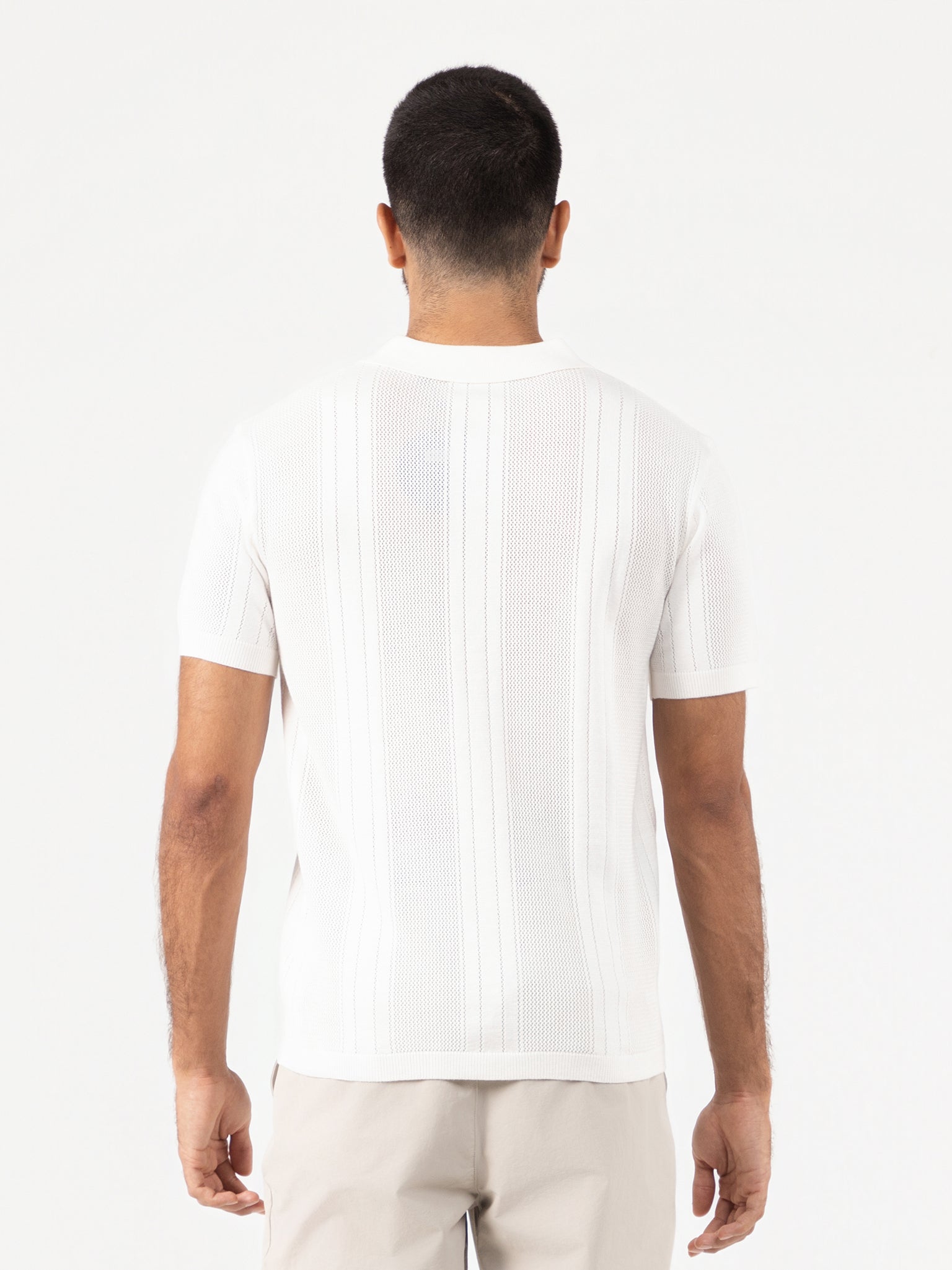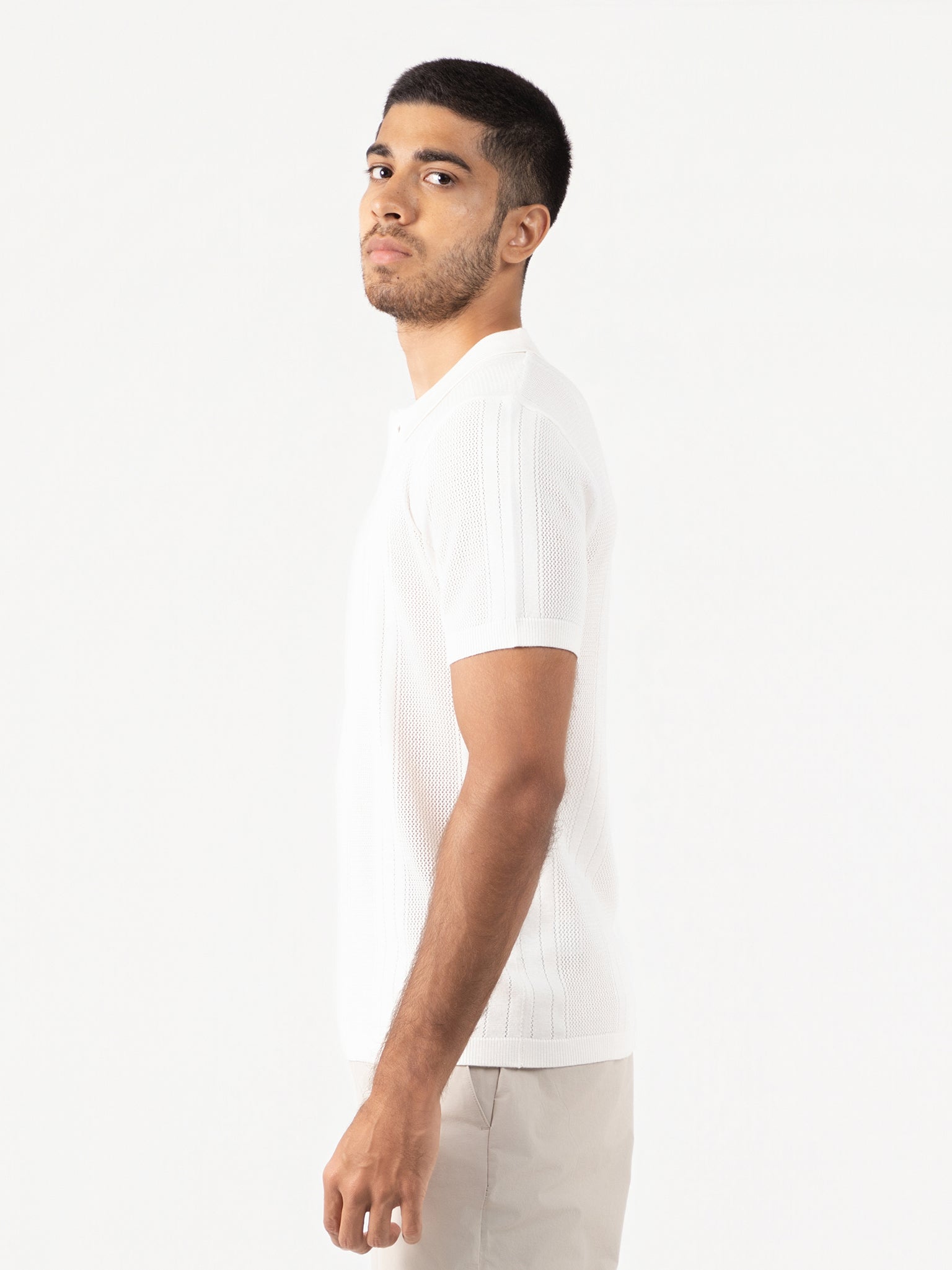 This slim-fit white polo shirt from the Portofino collection features a classic short sleeve and flat knit fabric for a smooth, comfortable texture. Designed with a clean, plain finish under the Leonardo concept, it combines sophisticated style with breathable fashion, making it an ideal choice for a polished, contemporary look.