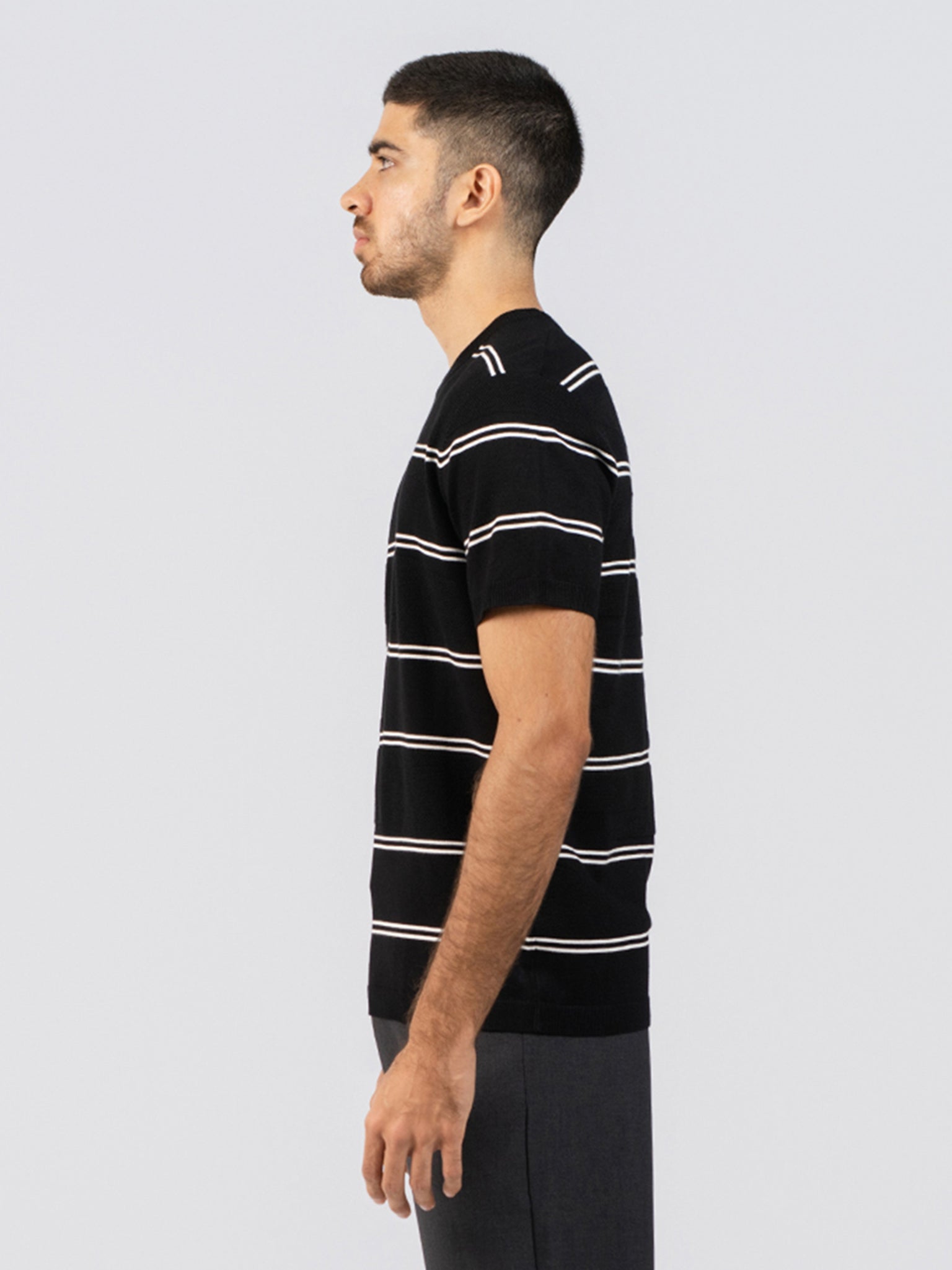 Elevate your everyday wardrobe with the DEEDAT PORTOFINO Tee Shirt, crafted from a premium poly viscose blend that delivers exceptional comfort and breathability. This black crew neck tee features a refined slim fit silhouette with short sleeves, offering a contemporary look that transitions seamlessly from casual outings to relaxed social settings. The plain, understated design ensures versatility, pairing effortlessly with any bottoms in your collection. The poly viscose fabric provides a soft drape while maintaining durability, making this an essential staple for the discerning dresser seeking quality and style.
