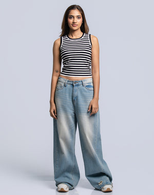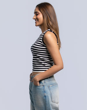 DEEDAT PORTOFINO Women's Stripe Tank Top - Black/White