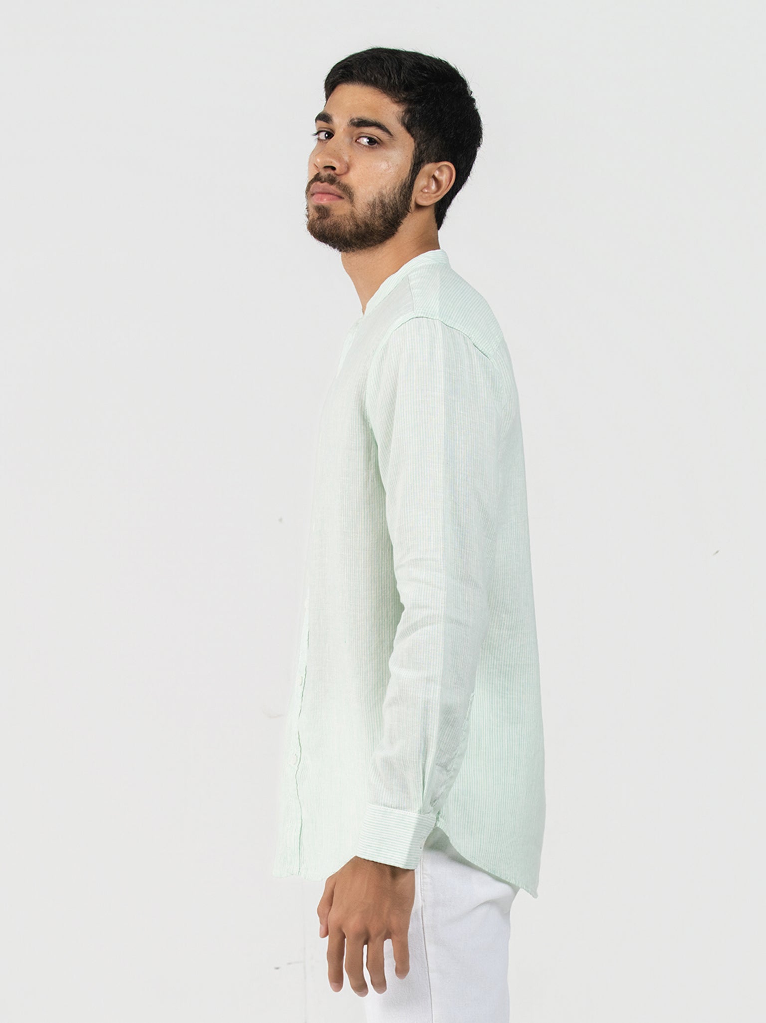 DEEDAT Linen Long Sleeve Shirt - Mint Green