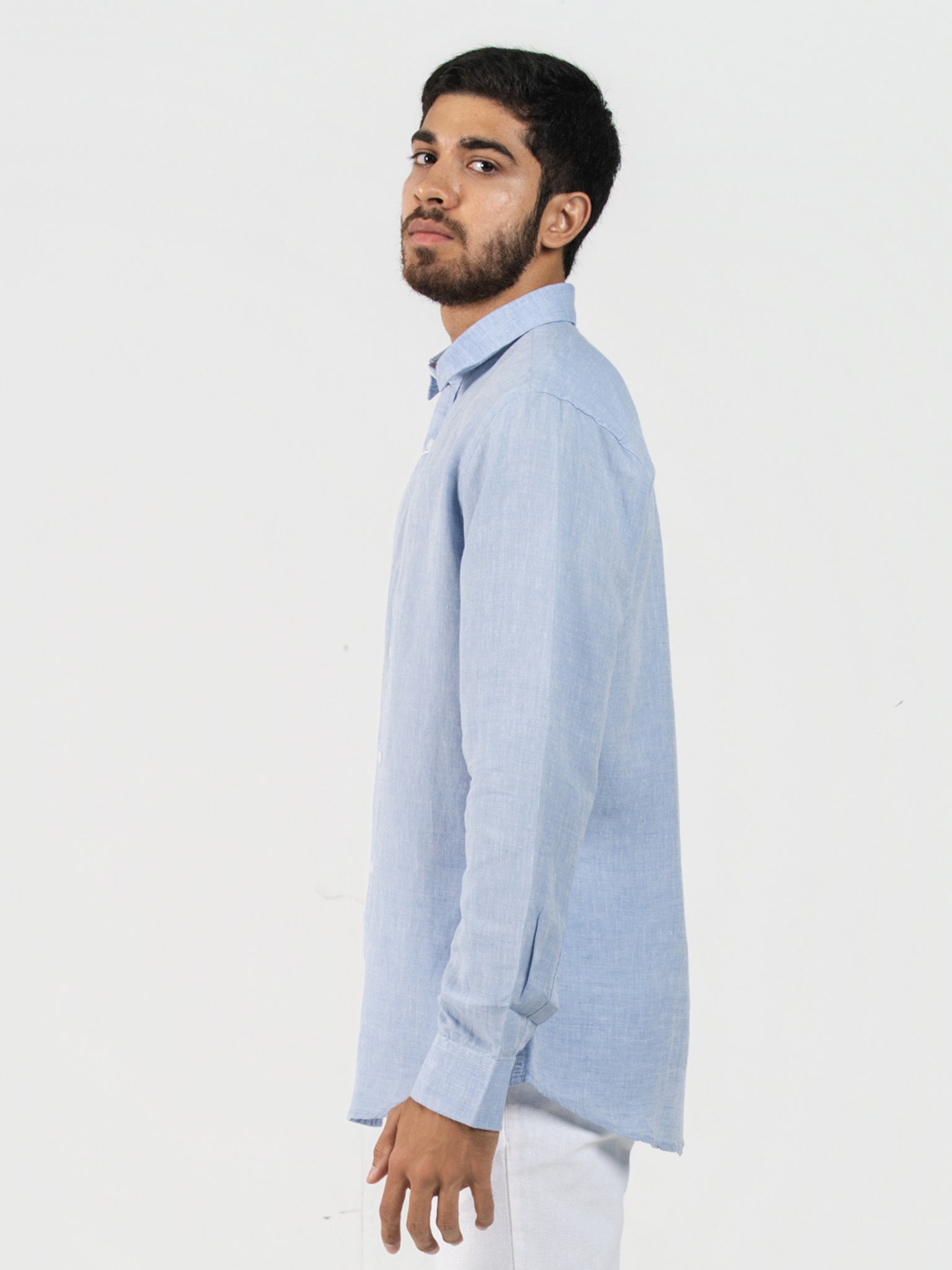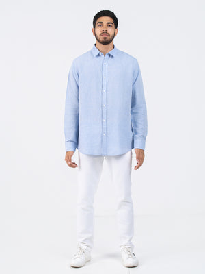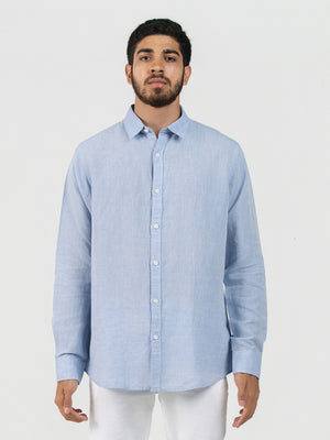 DEEDAT Linen Long Sleeve Shirt - Sky Blue