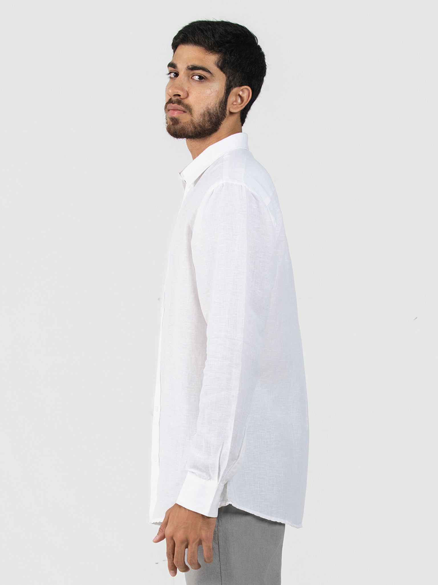 This white long-sleeve shirt features a cutaway collar and a regular fit, crafted from pure cotton for comfort and breathability. Its plain texture and classic design make it a versatile fashion staple suitable for both casual and formal settings. The cotton fabric ensures durability while keeping you comfortable throughout the day. Ideal for those seeking a refined yet effortless look.