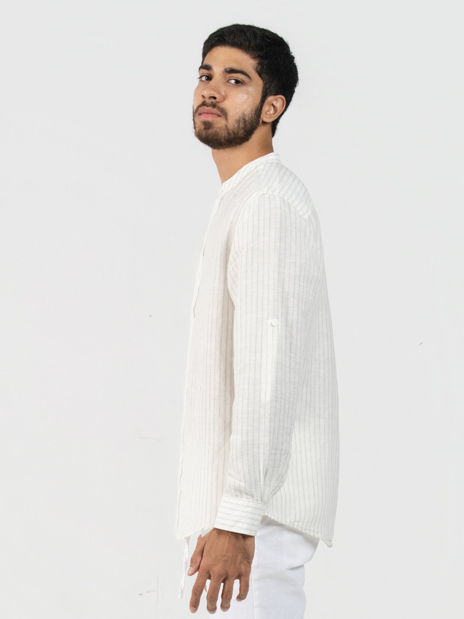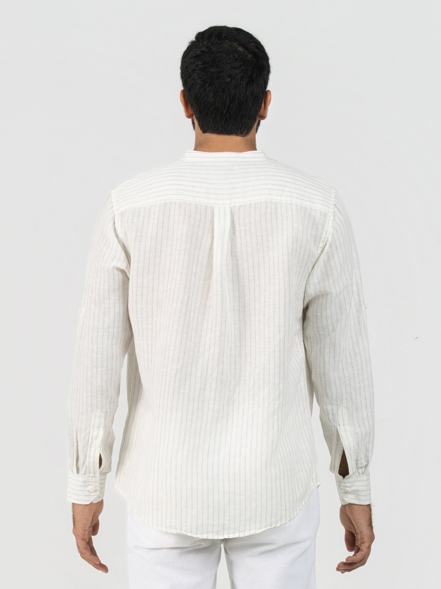 DEEDAT Regular Fit Long Sleeve Casual Shirt - White & Green