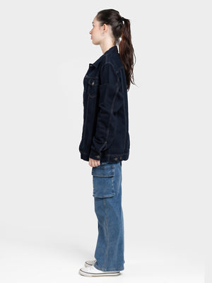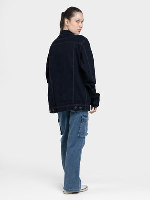 DEEDAT Regular Fit Long Sleeve Denim Jacket - Black