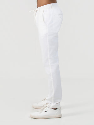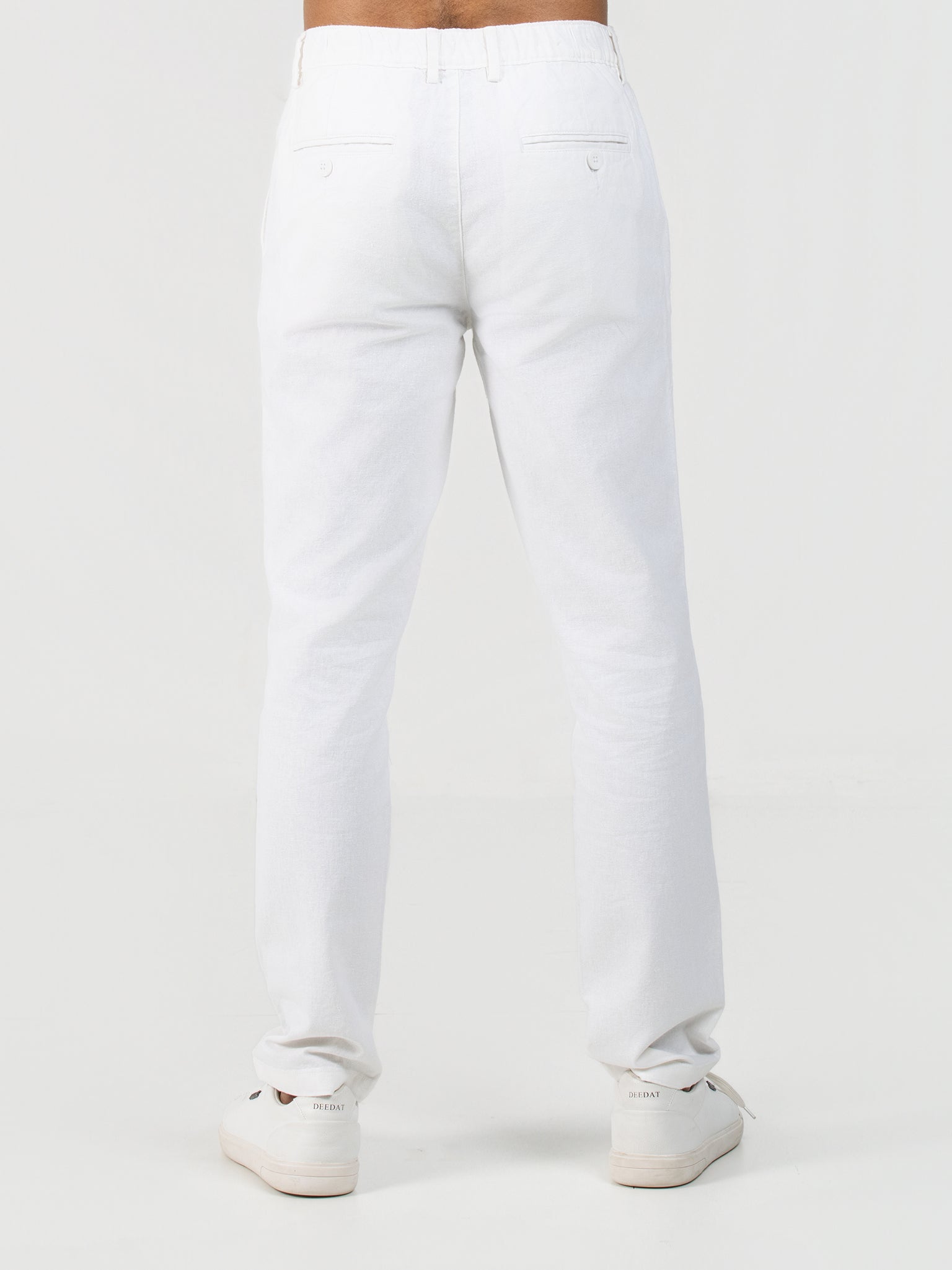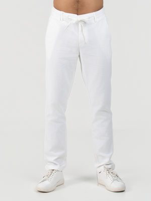 Crafted from a breathable cotton-linen blend, these off-white pants offer a comfortable regular fit with a clean, plain texture. Designed for everyday fashion, the standard hem adds a polished look suitable for both casual and semi-formal occasions. Ideal for those seeking effortless style with premium natural fabrics.