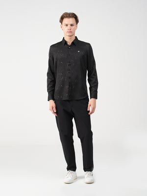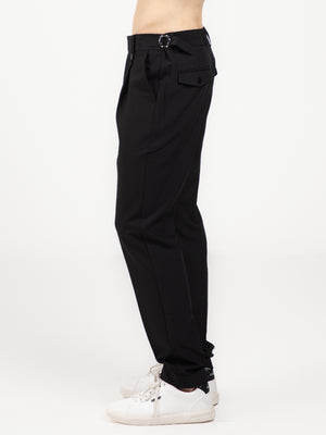 This black piece features a regular fit with a standard hem, crafted from plain poly viscose fabric for a clean and classic appearance.