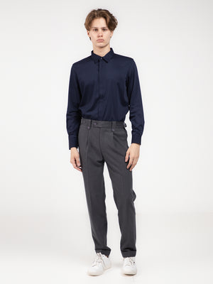 This black piece features a regular fit with a standard hem, crafted from plain poly viscose fabric for a clean and classic appearance.