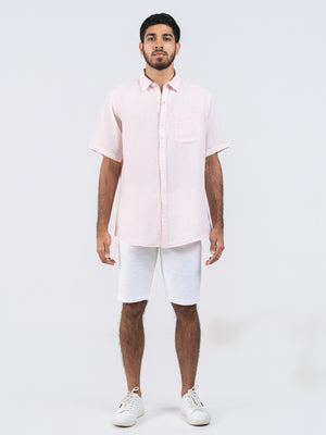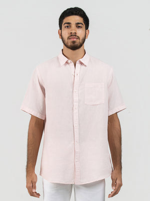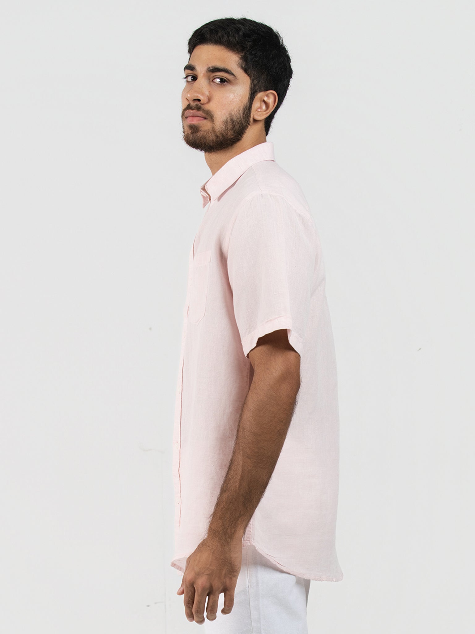 DEEDAT Linen Short Sleeve Shirt - Pink