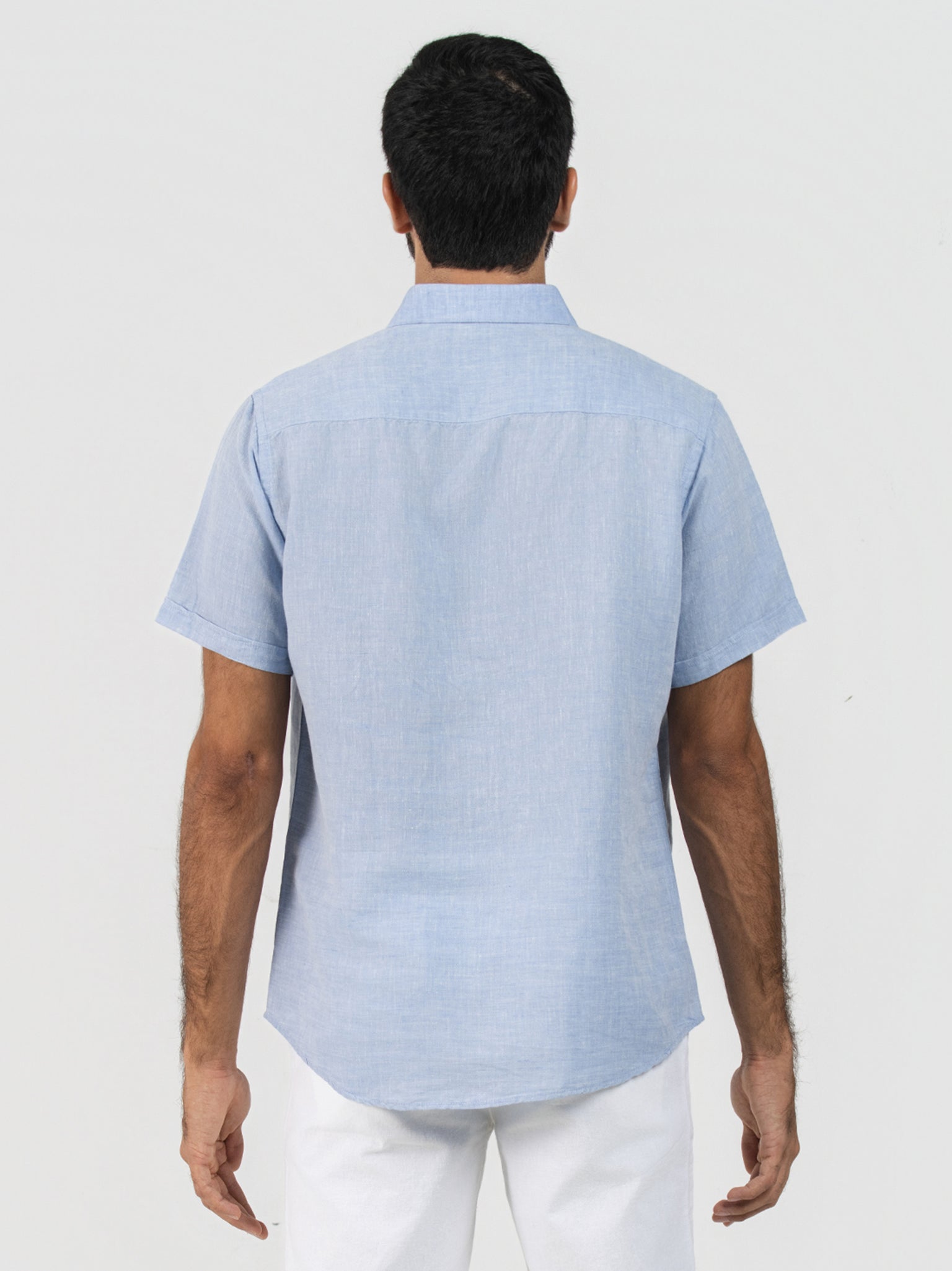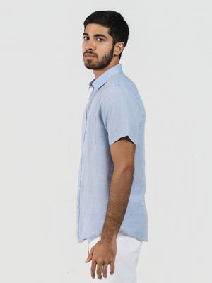 DEEDAT Linen Short Sleeve Shirt - Sky Blue