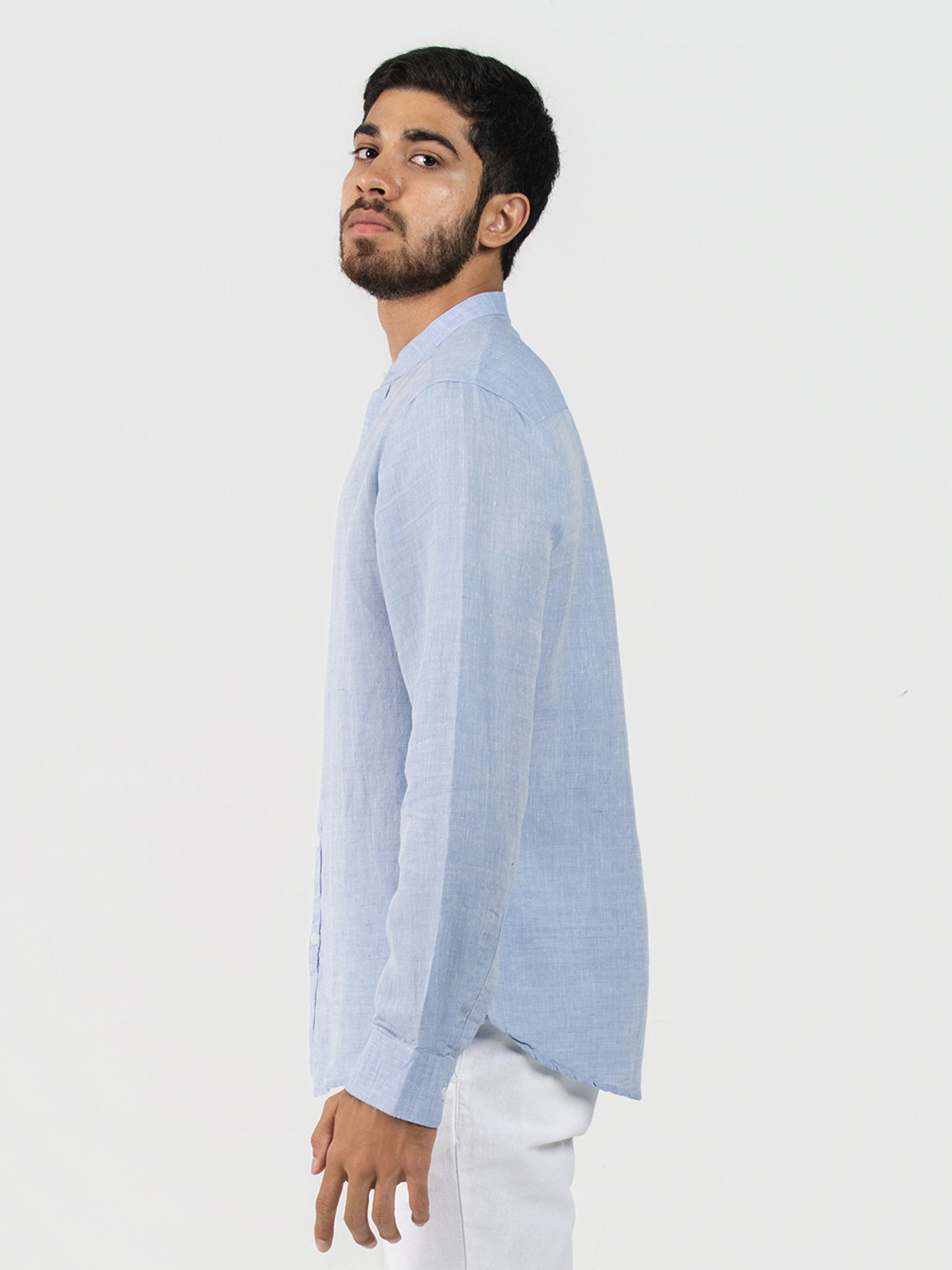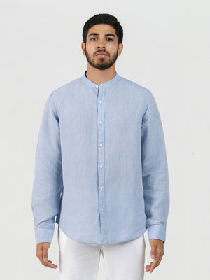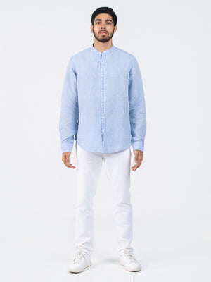 DEEDAT Linen Long Sleeve Shirt - Sky Blue