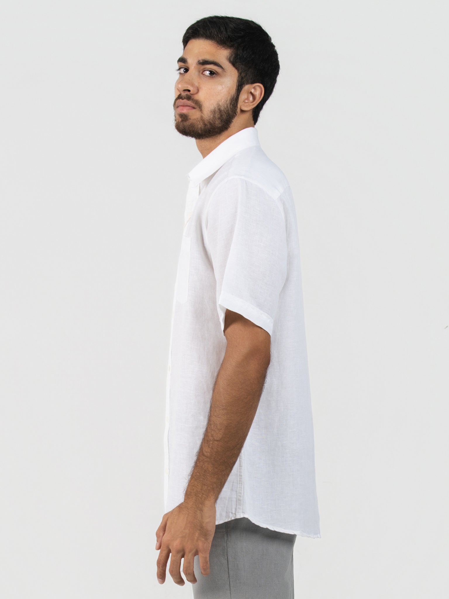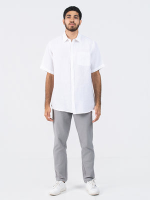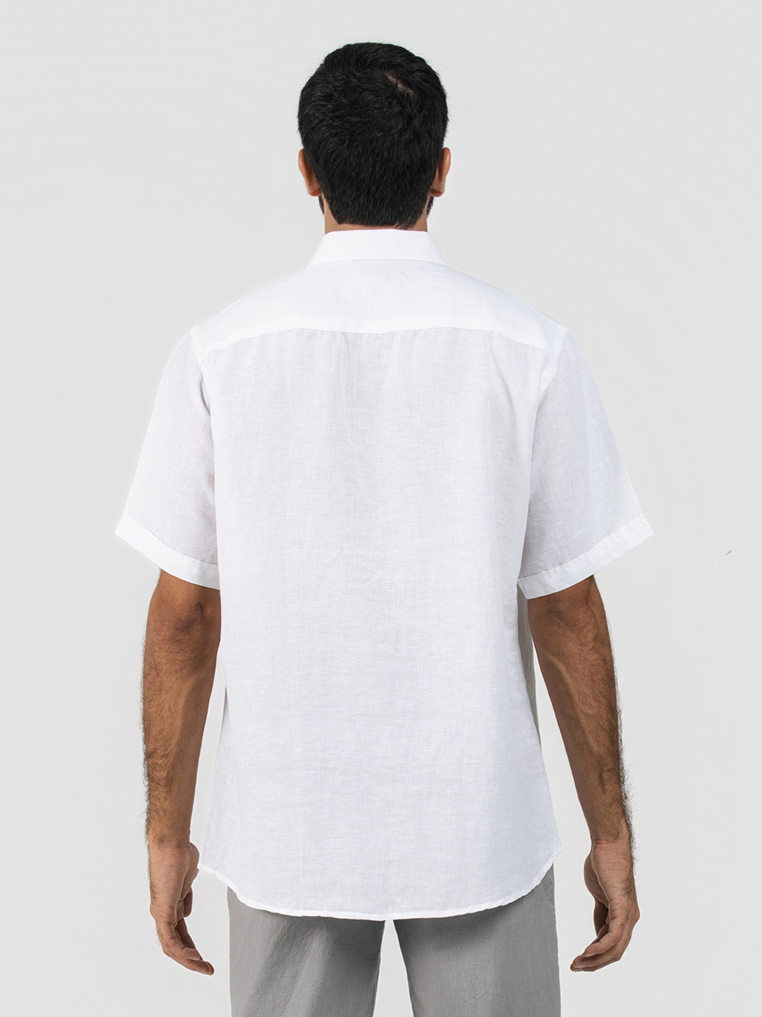 This regular-fit fashion shirt in soft cotton offers a comfortable, breathable wear ideal for daily use. Its plain white fabric paired with a stylish cutaway collar and short sleeves creates a refined yet versatile look. Perfectly balancing casual comfort and smart style, it suits a variety of occasions with ease.