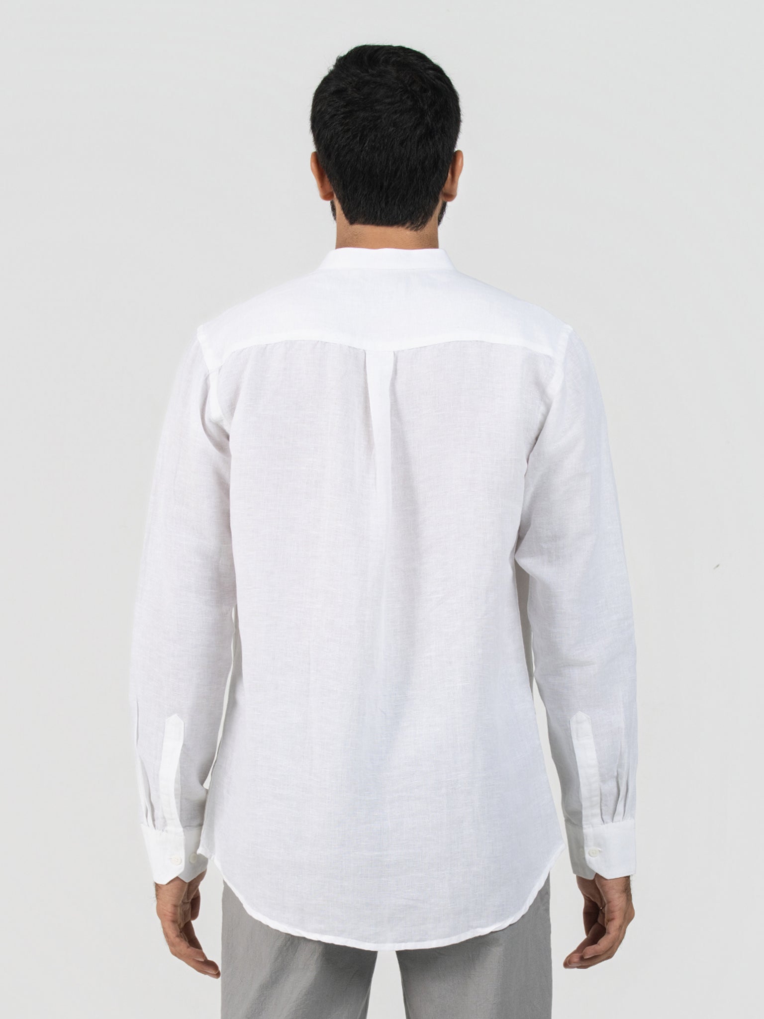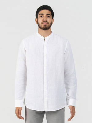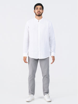 This olive-colored long sleeve shirt features a regular fit and a sophisticated mandarin collar, crafted from breathable cotton for all-day comfort. Its plain texture offers a versatile, fashion-forward look ideal for both casual and semi-formal occasions. The natural fabric ensures durability and ease of wear, making it a smart choice for refined everyday style.