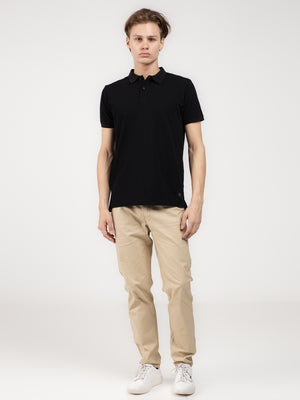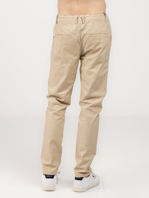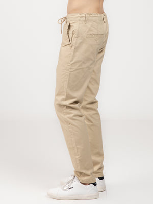 This navy fashion bottom from the Leonardo concept features a slim fit beige a standard hem and elastic waist, made from plain-textured cotton spandex for a sleek and comfortable look.