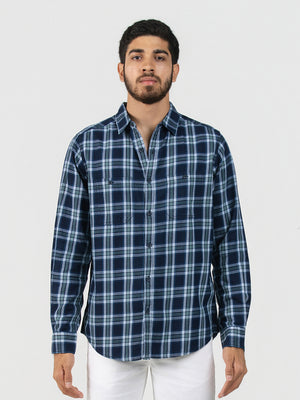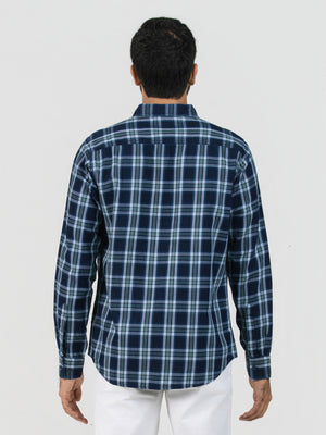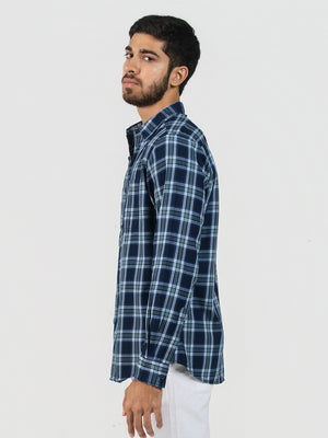 DEEDAT Slim Fit Long Sleeve Check Shirt - Navy Green