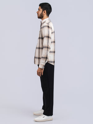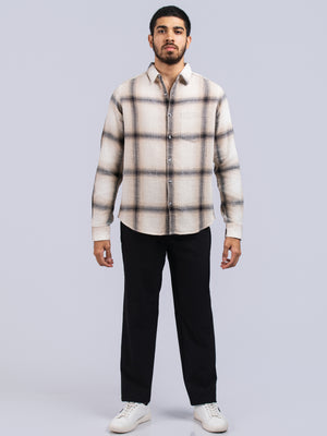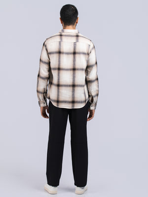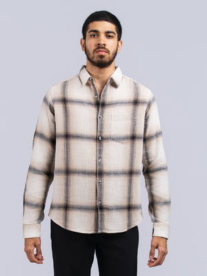Elevate your wardrobe with this sophisticated beige check shirt, crafted from premium cotton for breathable comfort throughout the day. The slim fit silhouette creates a refined, tailored appearance, while the long sleeves and cutaway collar offer versatile styling options for both professional and casual settings. The subtle check texture adds visual interest without overwhelming your look. Perfect for layering or wearing standalone, this fashion-forward piece transitions seamlessly from office to evening wear.