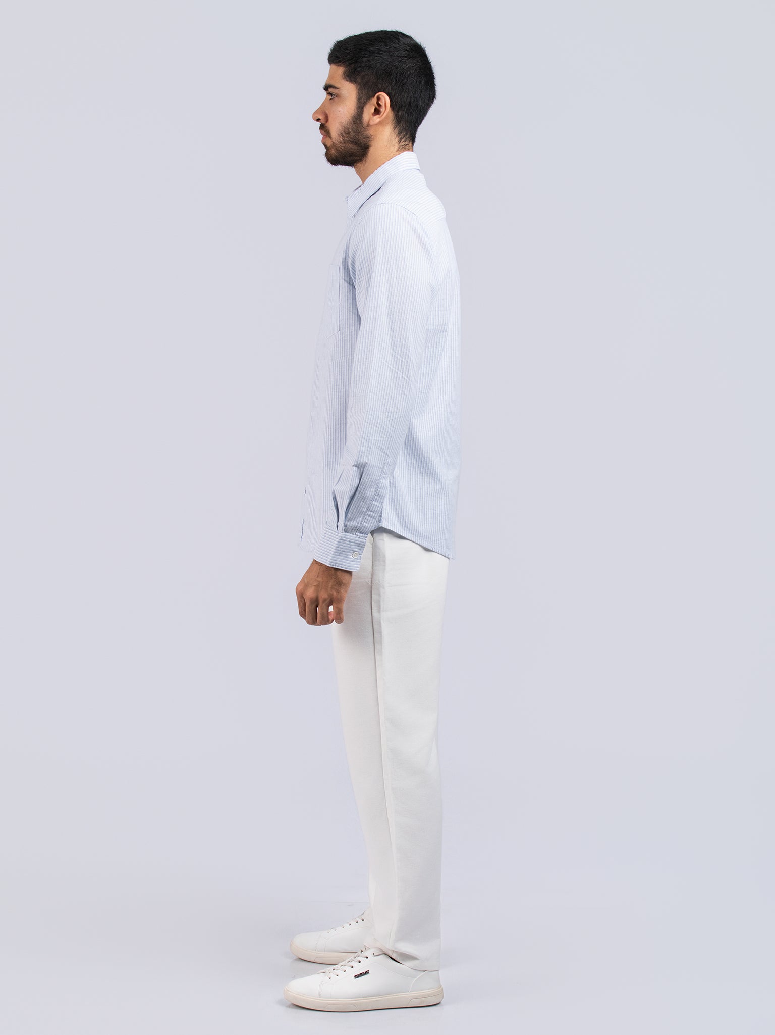 Elevate your wardrobe with this sophisticated blue striped shirt, crafted from premium cotton for breathable comfort throughout the day. The slim fit silhouette creates a refined, tailored appearance, while the long sleeves and distinctive cutaway collar deliver contemporary style with professional polish. Perfect for both office settings and smart casual occasions, this versatile piece transitions seamlessly from boardroom to evening engagements. The subtle stripe texture adds visual interest without compromising versatility, making it an essential foundation for any discerning gentleman's collection.