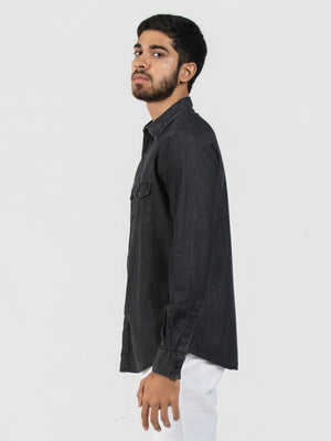 DEEDAT Slim Fit Long Sleeve Shirt - Gray Black
