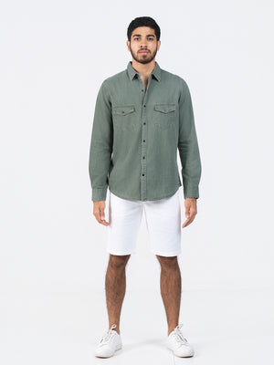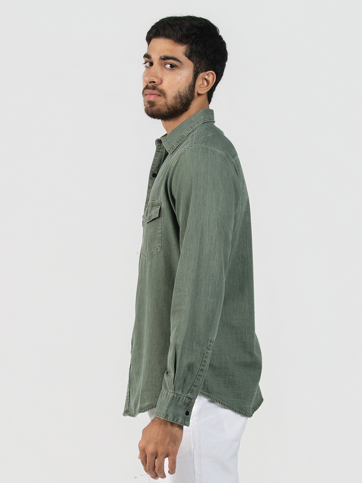 DEEDAT Slim Fit Long Sleeve Shirt - Gray Olive