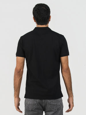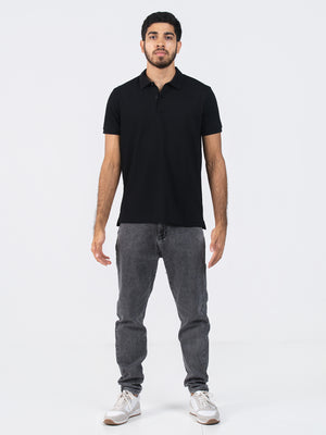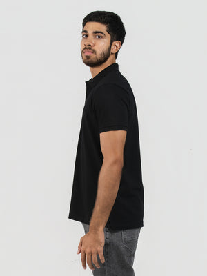 This black Deedat polo t-shirt combines a classic slim fit silhouette with breathable piqué fabric for enhanced comfort and durability. Its plain texture and basic design provide versatile styling options, while the short sleeves and polo neck offer a polished, professional look suitable for various occasions. Ideal for those seeking a refined yet comfortable wardrobe staple.