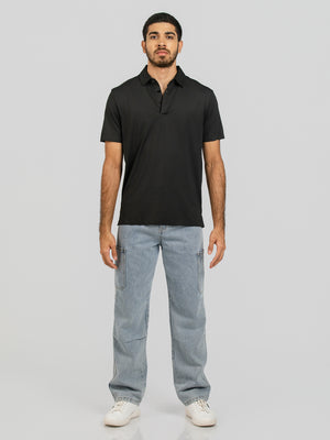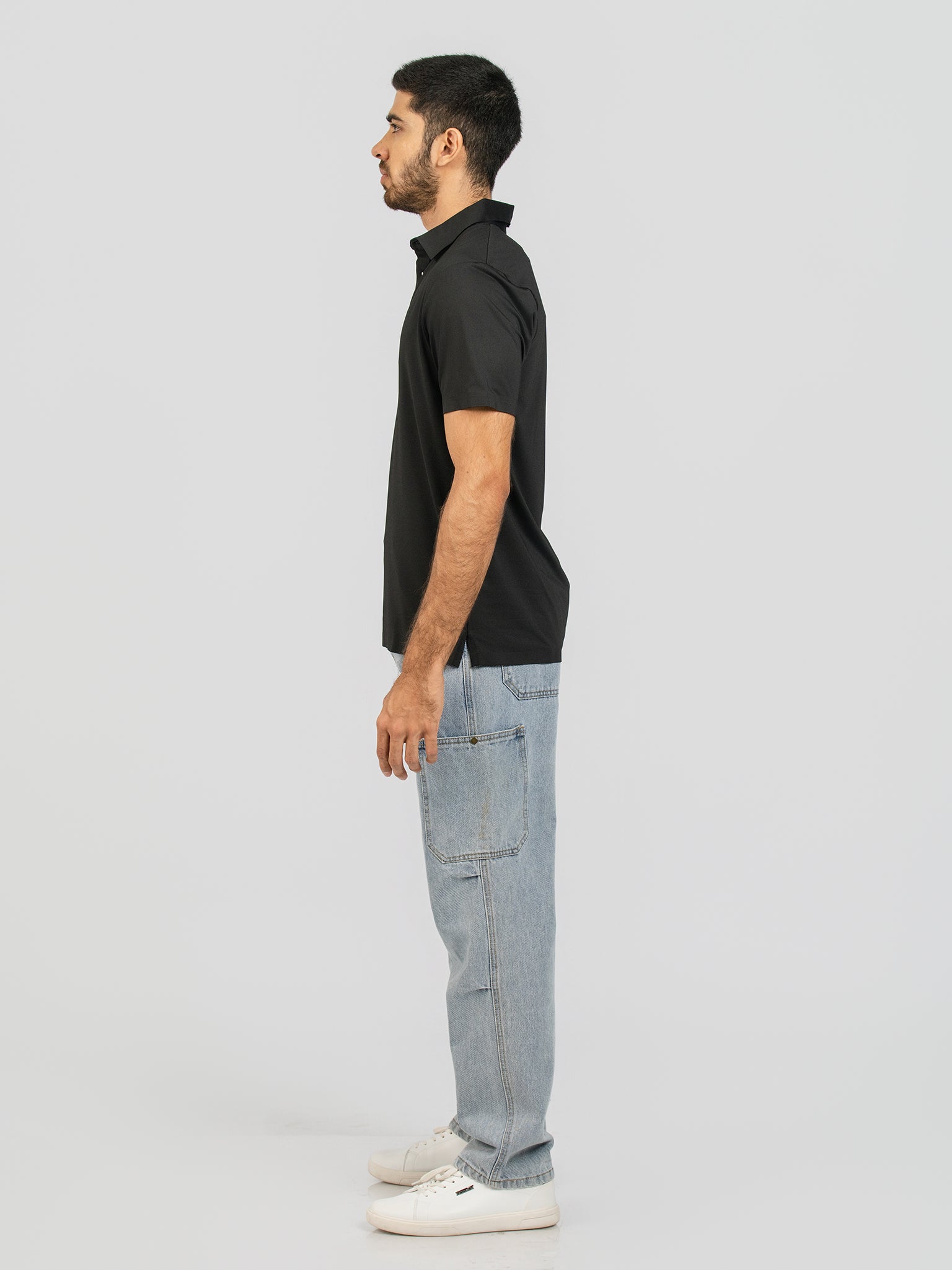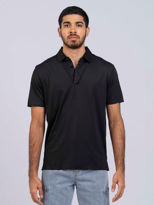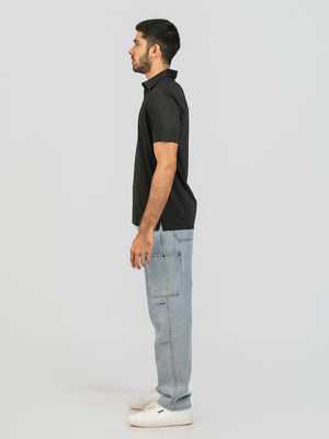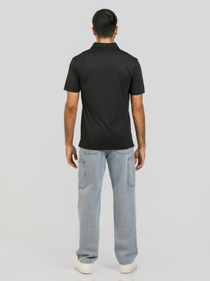 Elevate your casual style with this sleek black polo shirt, crafted from a comfortable cotton-poly blend. Featuring a slim fit design, short sleeves, and a classic polo collar, this shirt is perfect for everyday wear.
