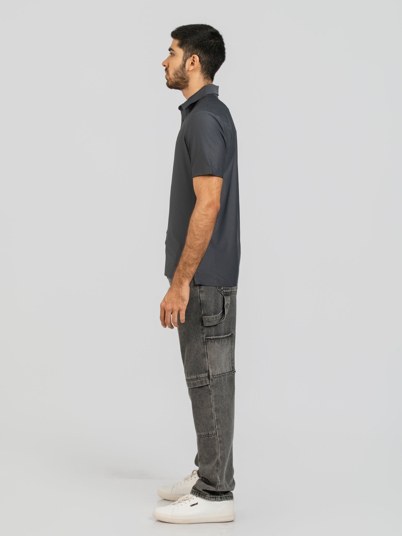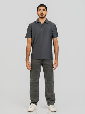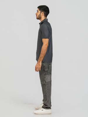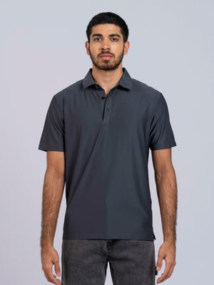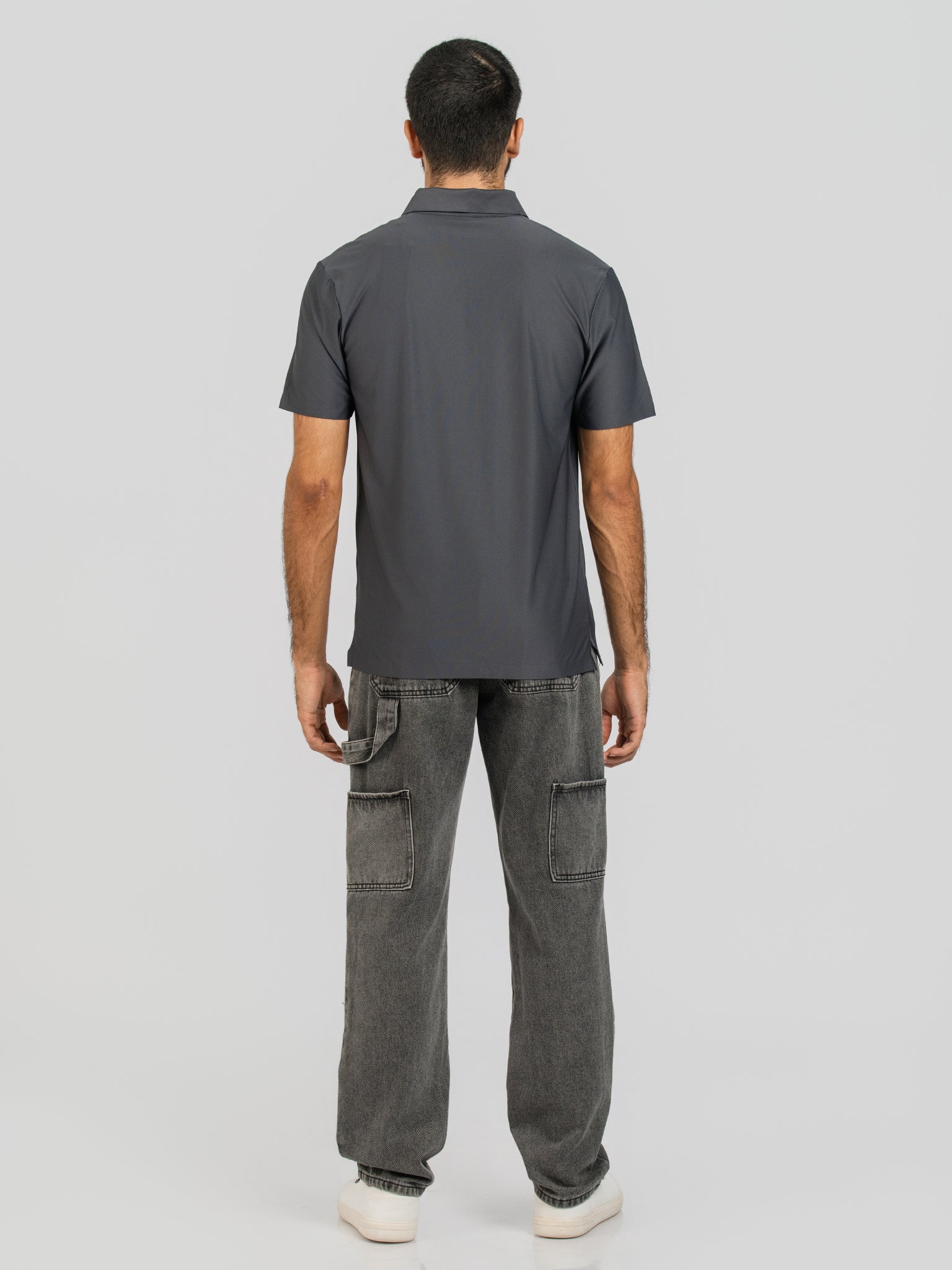 Elevate your casual style with this sleek gray polo shirt, crafted from a comfortable cotton-poly blend. Featuring a slim fit design, short sleeves, and a classic polo collar, this shirt is perfect for everyday wear.