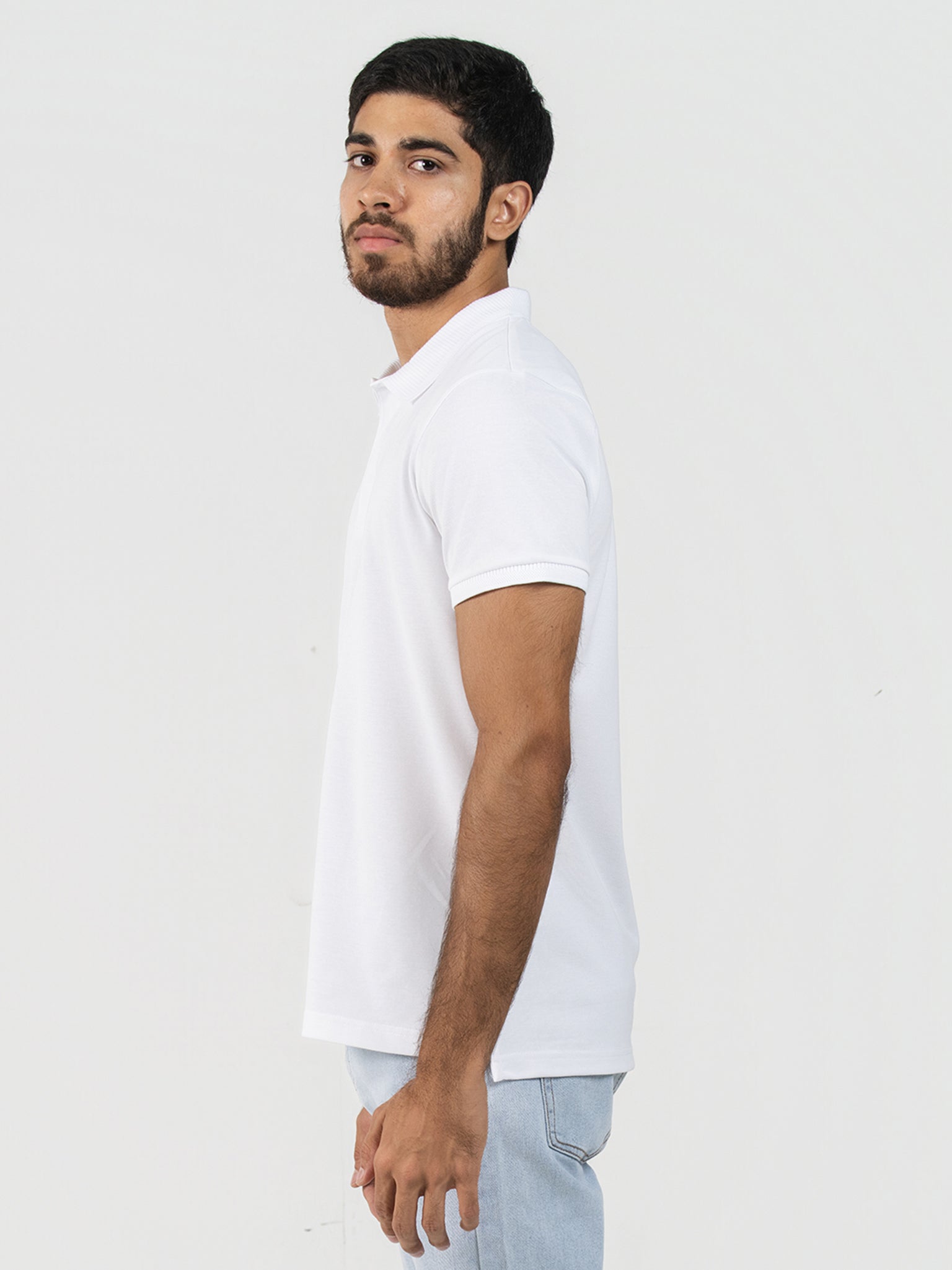 This white Deedat polo t-shirt combines a classic slim fit silhouette with breathable piqué fabric for enhanced comfort and durability. Its plain texture and basic design provide versatile styling options, while the short sleeves and polo neck offer a polished, professional look suitable for various occasions. Ideal for those seeking a refined yet comfortable wardrobe staple.