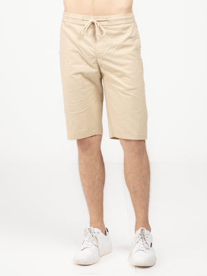 This white fashion bottom from the Leonardo concept features a slim fit beige a standard hem and an elastic waist, crafted from plain-textured cotton spandex for comfort and style.