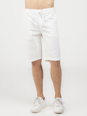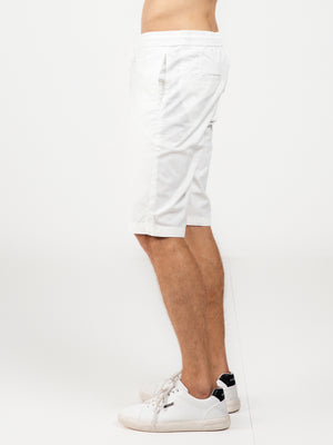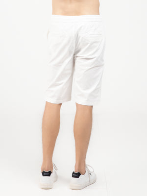 This white fashion bottom from the Leonardo concept features a slim fit with a standard hem and an elastic waist, crafted from plain-textured cotton spandex for comfort and style.