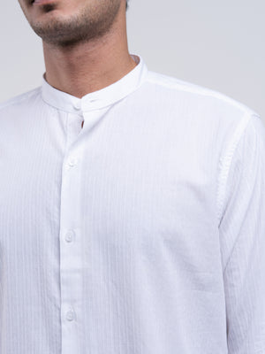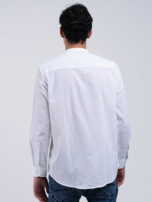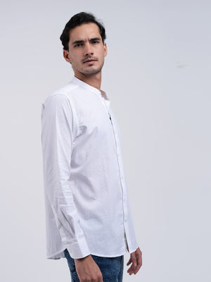 This white long sleeve casual shirt from the Tuscan Hues collection features a structured cotton fabric that ensures comfort and durability. Designed with a regular fit and a curved hem, it offers a modern silhouette suitable for various occasions. The mandarin collar adds a refined touch, aligning with the Leonardo concept’s sophisticated style. Ideal for those seeking a blend of fashion and ease, this shirt combines classic elements with contemporary design for versatile wardrobe appeal.