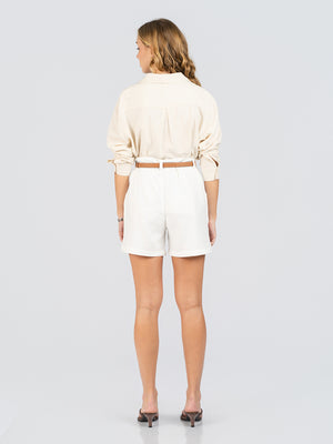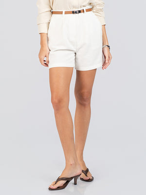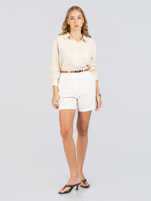 DEEDAT Women Casual Short - Cream Experience understated elegance with these women's casual shorts, engineered from a sophisticated cotton-linen blend that balances structure with comfort. The natural fiber composition provides superior moisture-wicking properties, keeping you cool throughout the day while resisting wrinkles and maintaining shape through repeated wear. The cream colorway serves as a versatile foundation piece, complementing both minimalist and eclectic styling approaches. The plain weave construction emphasizes quality craftsmanship without unnecessary embellishment, making these shorts a reliable staple for warm-weather wardrobes. Ideal for casual outings, weekend retreats, or layered styling with lightweight tops and accessories.
