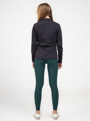 This long fashion piece comes in black, featuring a high neck, straight cut, and long sleeves. It has a plain texture and is made from nylon-spandex material.