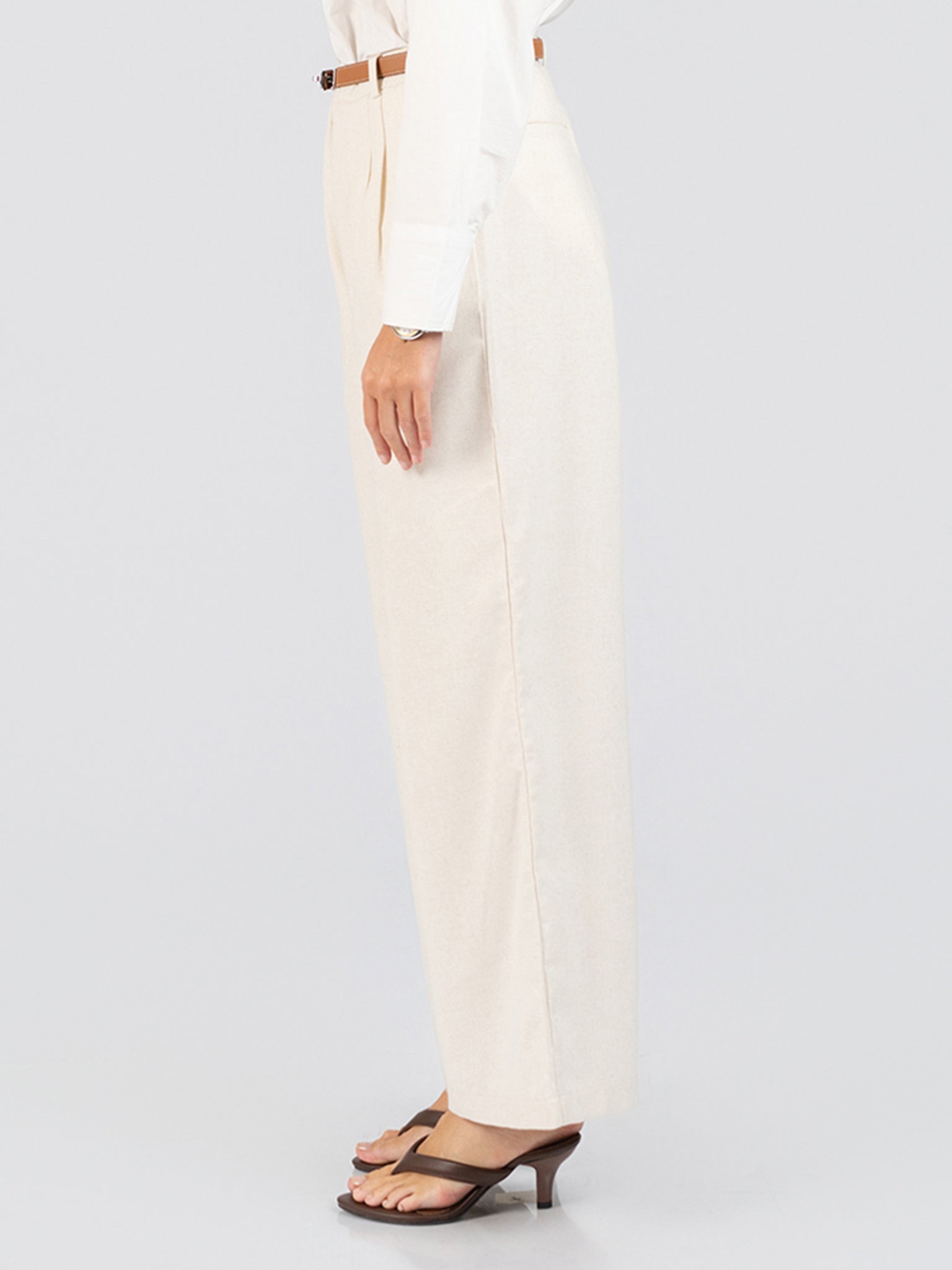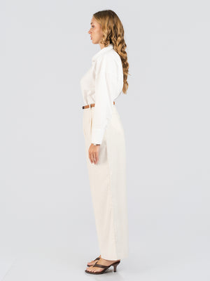 Elevate your everyday wardrobe with this versatile casual pant crafted from a breathable cotton-linen blend. The relaxed wide-leg silhouette offers effortless comfort and contemporary style, while the cream tone pairs seamlessly with virtually any top in your collection. The plain texture keeps the focus on the flattering cut, making it an essential piece for both casual outings and relaxed professional settings. Perfect for warm climates, this fabric naturally regulates temperature while maintaining its shape throughout the day.