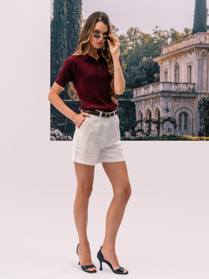 # Slim Fit Polo Shirt – Wine Crafted from premium cotton, this slim-fit polo delivers refined comfort and versatility for everyday wear. The short sleeves and classic polo collar provide a polished look suitable for casual outings or relaxed professional settings. The cream and navy colorway offers timeless appeal that pairs effortlessly with most wardrobes. Available in XS, this piece combines breathable fabric with a tailored silhouette for a sharp, contemporary appearance.